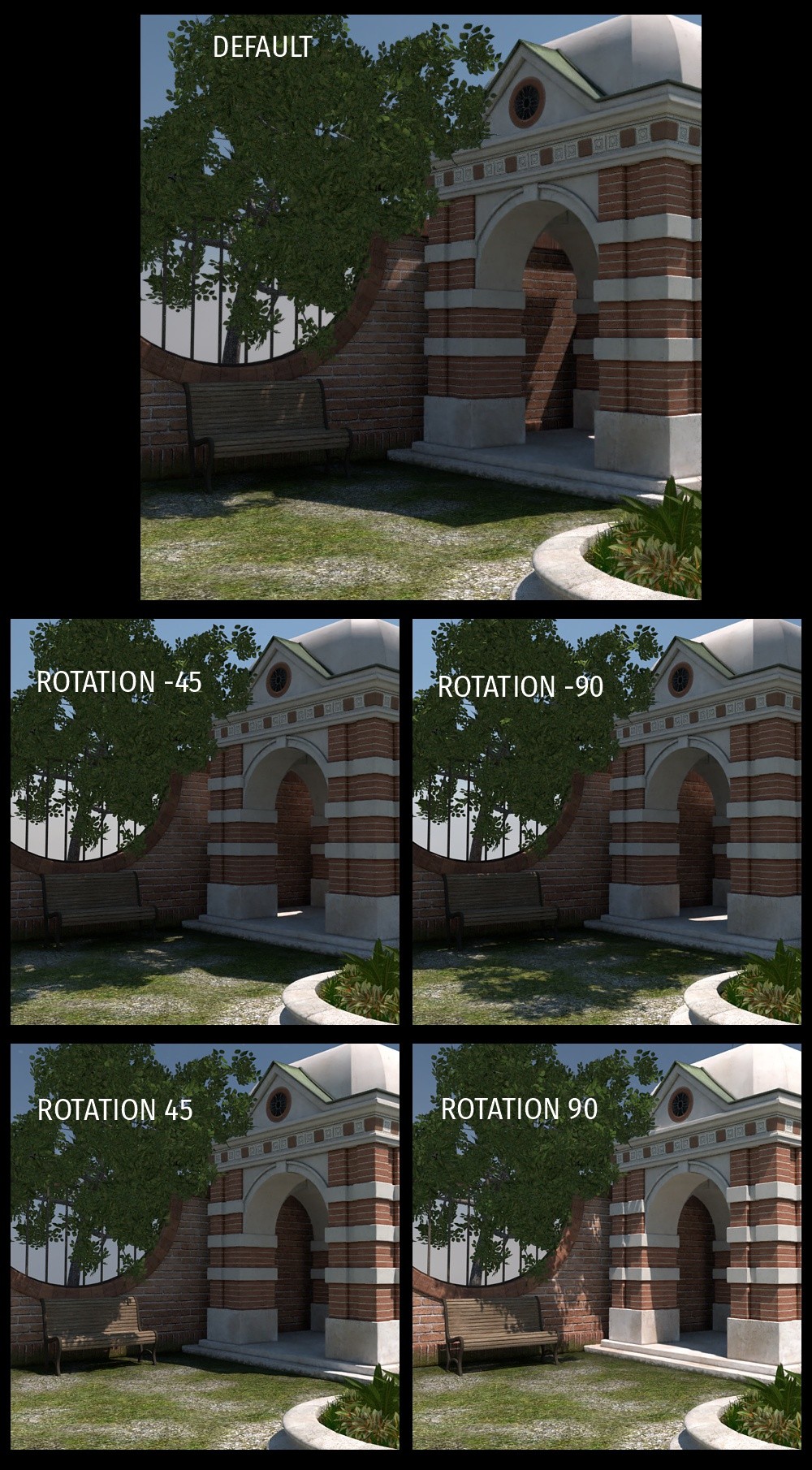 Here are some examples using the same hdri but rotating it to cast light and shadows at different angles.