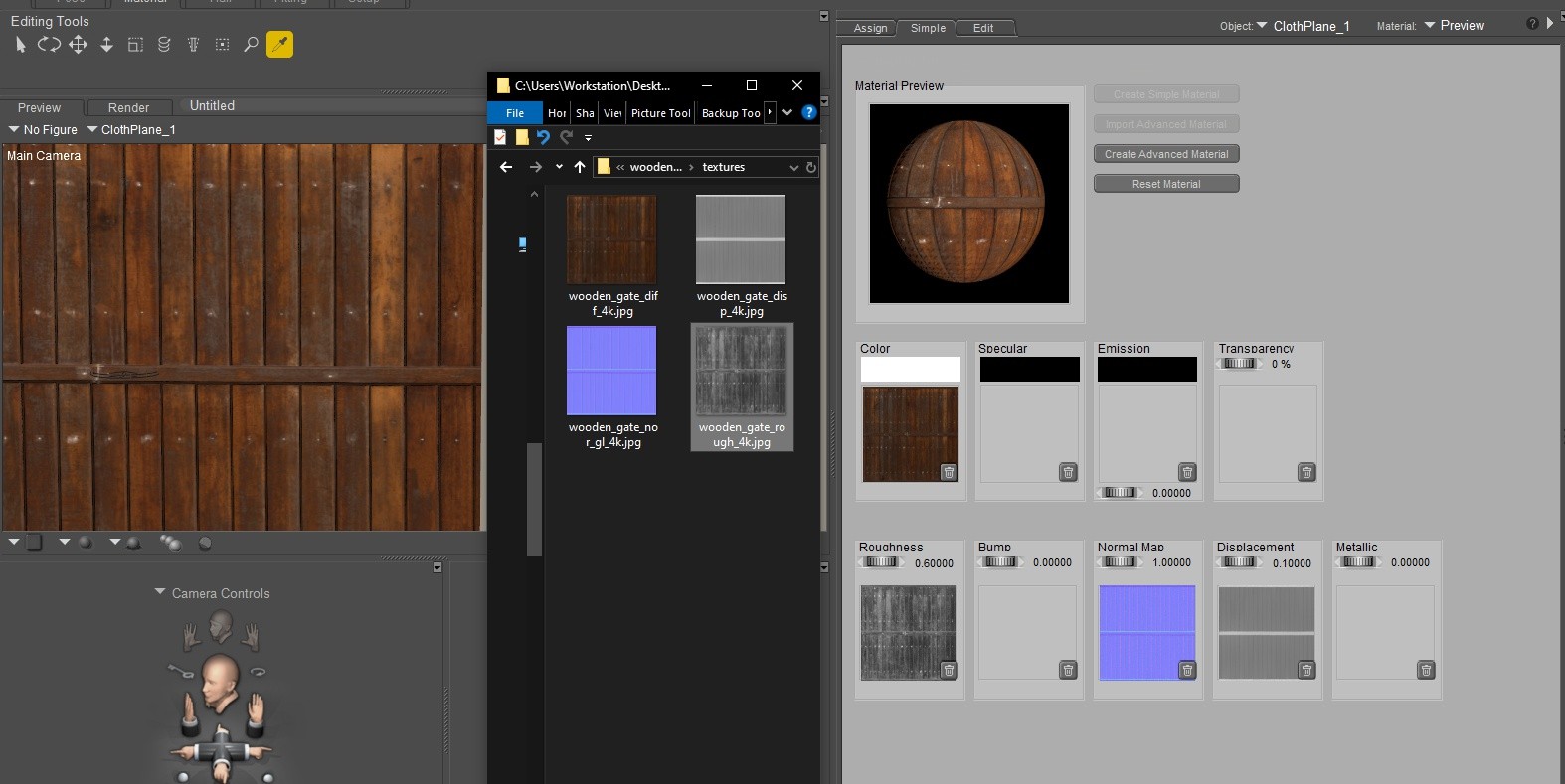 For this walkthrough, we’re using free textures from Poly Haven. It’s worth taking a moment to explore their downloads so you know exactly what maps you’re getting. Our example uses the Wooden Gate texture set, but the process is the same no matter which asset you choose. Different packs may include different maps, and that’s perfectly fine — Poser’s Simple Material editor can handle whatever you bring in.