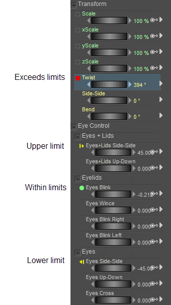 Parameter limit indicators.