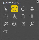 The Rotate tool bends a body part at its joint. Rotation works in three dimensions, allowing you to make a lot of progress very quickly. To rotate a body part, select the body part you wish to rotate and drag perpendicular to the part to cause the rotation to rotate up and down (relative to your point of view). Dragging parallel to the part rotates it in and out, again relative to your point of view.