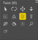 The Twist tool rotates a figure/part/prop along its longest axis (length). You can twist an entire figure by selecting it and dragging. Most of the body’s joints don’t allow much twisting. For example, your forearm can twist almost 180 degrees while your wrist can hardly twist at all. The twist axis of the head, neck, and torso is along the spine. For the forearm, the axis lies along the arm’s length. Twisting an entire figure rotates it about its own axis. If the figure is standing, it spins around. If lying down, it rolls over. You can also adjust an item’s twist using the parameter dials, as discussed in Parameters Palette .