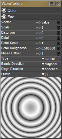 - Distortion: Amount of distortion of the wave (similar to the Marble texture in Blender Internal)