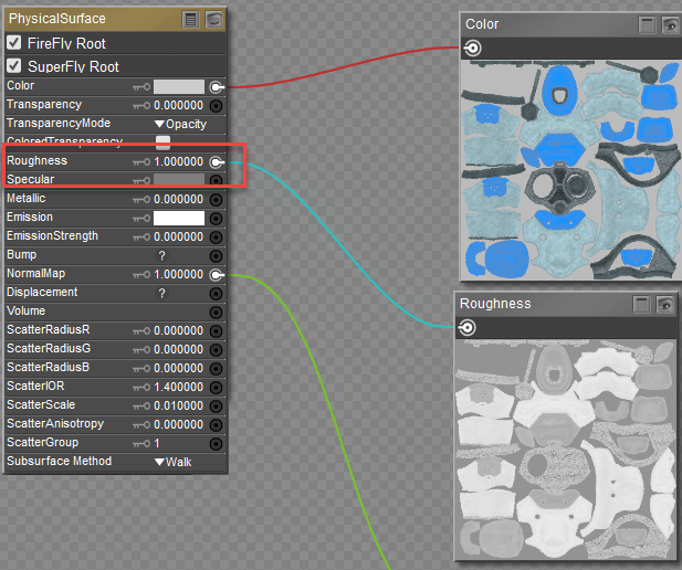 Connect the Normal map to the Normal input of the Physical Surface Node. Leave setting at 1.