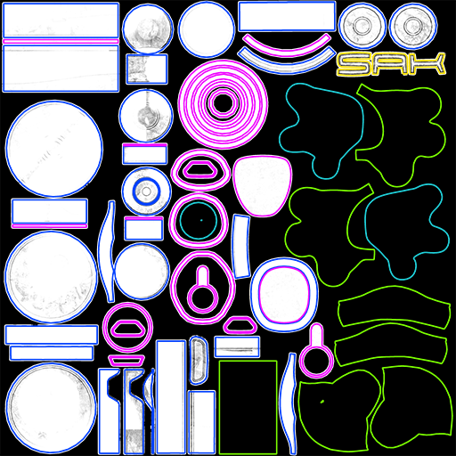The Kitty2 metallic map identifies the metallic materials in white. Non-metallic materials are black.