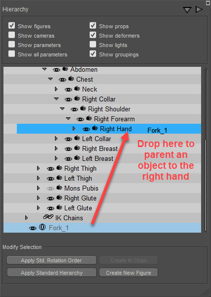 You can also set up hierarchies between figures outside the Hierarchy Editor palette as follows: