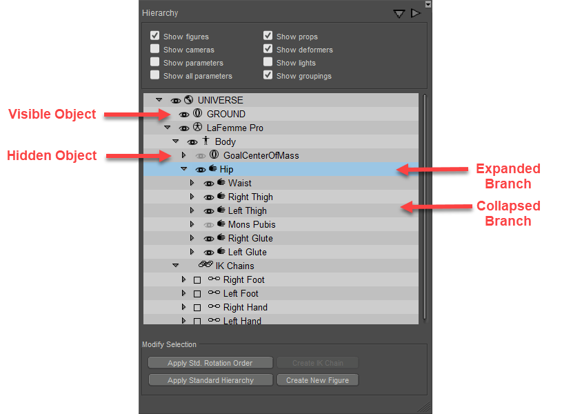 Elements of the Hierarchy Editor.
